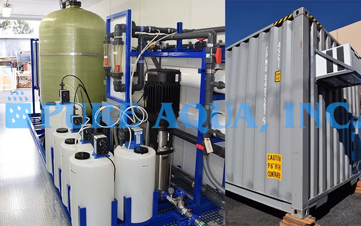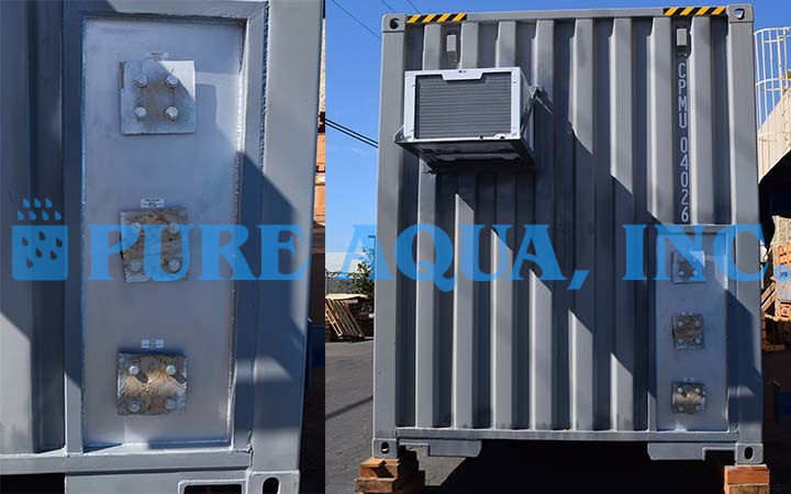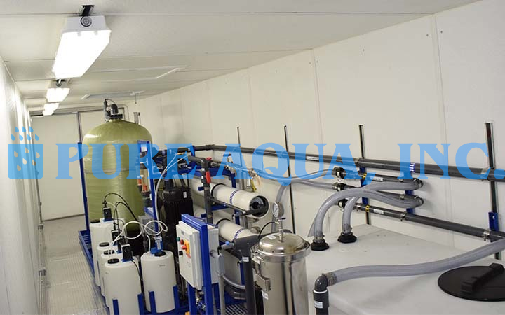 جهاز التناضح العكسي المجهز ضمن حاوية كان مطابقا لجميع متطلبات وشروط العميل و زود الفندق بالماء النقي .